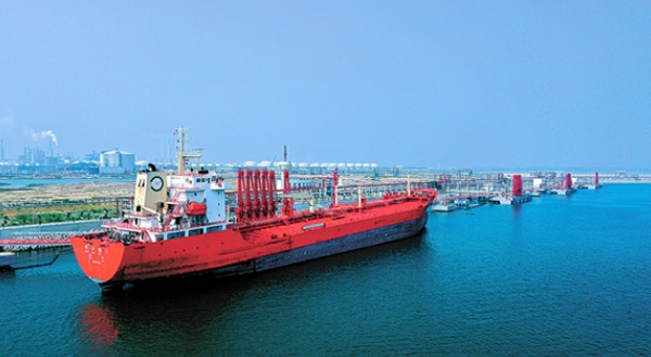 8月30日,中科炼化首批3.38万吨国6汽柴油通过自建码头和湛北输油管线顺利出厂。从此,中科炼化成为为我国华南、西南等市场供应清洁能源的新成员。图为中科炼化首批成品油装船出厂现场。
