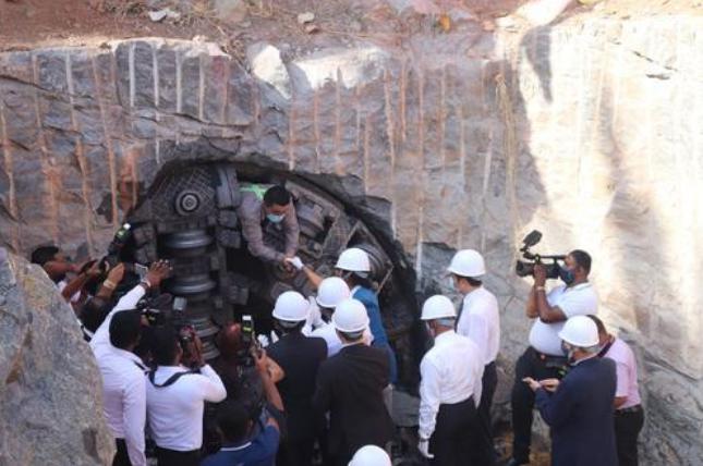 ③中外媒体联袂采访斯里兰卡盾构隧道贯通消息。宋洋摄