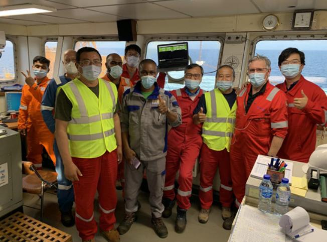 “协调难度前所未有。”亲身经历了项目动迁流程的员工尹党强感叹道。随着新冠肺炎疫情在全球蔓延,项目开工面临种种不确定性。人员流动受限,设备动迁同样举步维艰。阿曼项目全部船舶、船上的工程师及操作人员均来自中东、欧洲和东南亚国家,高峰期海管铺设作业涉及11家专业公司、16艘船舶,施工人员超过400名。