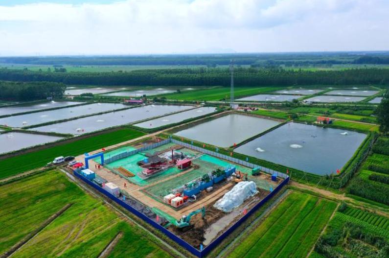 图为江苏油建承建的中俄东线天然气管道工程(永清-上海)泰安-泰兴段定向钻穿越项目施工现场。