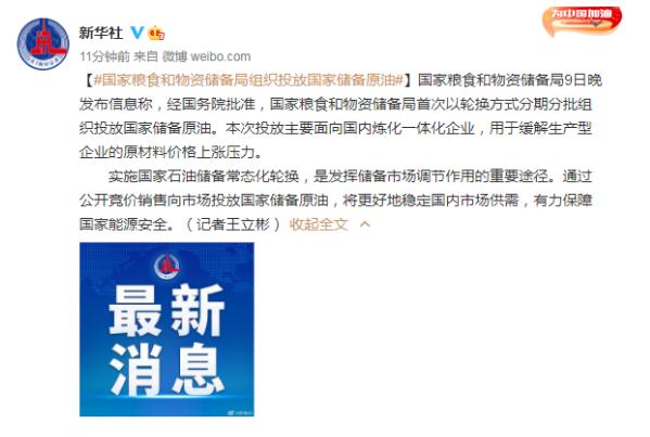 国家粮食和物资储备局组织投放国家储备原油(图)