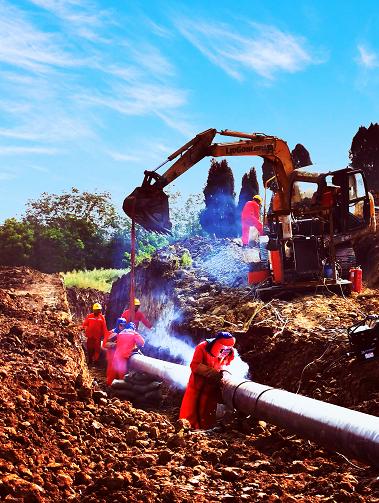 说到这次任务,大家异口同声说的一个字就是“难”。难在部分管道处在水禽保护区,准入手续办理要求季度严苛,进度缓慢;难在线路涉及水稻田路段,多数村民要求将水稻收割后再施工,协调难度大;难在施工时间处于防洪防汛期,多段人民渠穿越时间窗口期短,三天完工难;难在酷暑雨季交替,疫情反复,施工人员结构复杂;难在任务重,时间短,要求高,管网工艺安装复杂,却质量、安全、进度、效益,一样也不能少……
