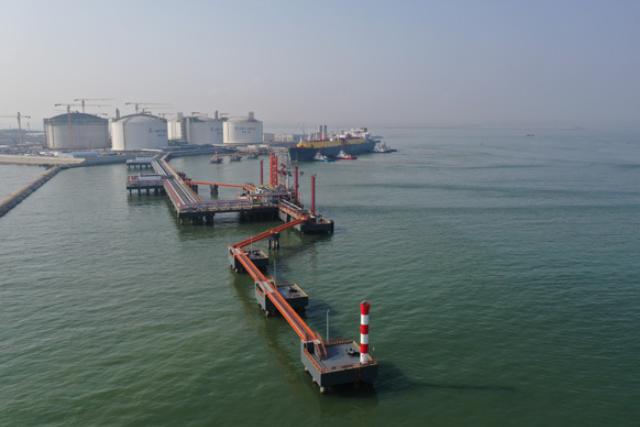 满载6.9万吨LNG的运输船靠泊天津LNG接收站“2号泊位”。