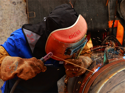 施工人员顶着高温精心焊接,打造“一带一路”沿线精品项目。