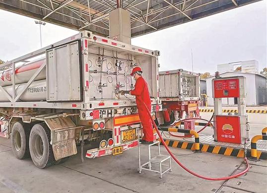 图为天然气销售上海分公司员工坚守保供一线,为车辆加气。