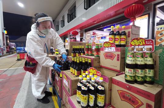 上海疫情期间,便利店零售改为油岛直售。