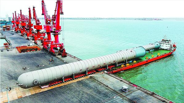天津南港乙烯项目首批大型设备到港上岸(图)