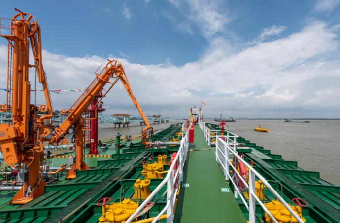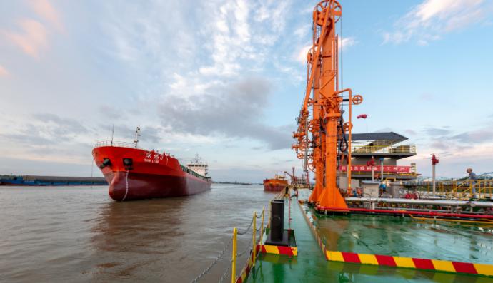[中国石化新闻网2022-06-24]6月21日,一船满载5500吨对二甲苯产品的大型船舶驶离九江石化码头,标志着九江石化89万吨/年芳烃联合装置的配套码头建成投用,为企业向炼化一体化高质量转型发展迈出了坚实的一步,为地方打造超千亿元产业集群打下基础。该工程于2021年1月21日开工建设,2022年6月2日通过交工验收,对九江石化形成炼化一体化新格局,打造国内极具特色影响力的石化产业基地具有重要推动作用。