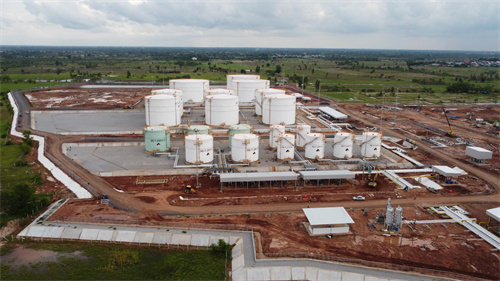 泰国东北部成品油管道罐区全景。