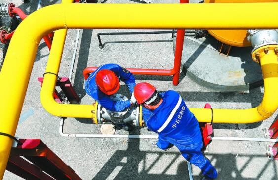 7月以来,浙江连续发布高温红色预警,浙江杭州石油各油库、加油站加大高温天气生产装置隐患排查,确保夏季能源安全稳定供应。图为7月15日,杭州石油古荡综合供能站员工冒着42摄氏度高温对天然气输气管线进行检维修。记者胡庆明摄龚良奇文