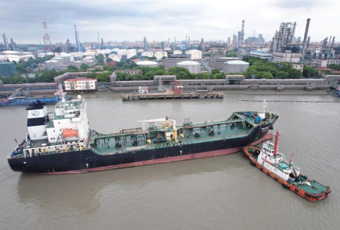 图为“泰海3”号沥青船准备停靠3号码头。