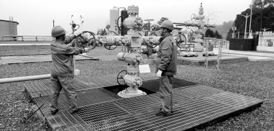 12月8日,中国石化西南地区首个储气库——清溪储气库正式开井采气。中原油田普光分公司超前部署,深入开展隐患排查和设备维护保养工作,确保储气库按计划平稳采气,切实保障川东北地区冬季天然气平稳供应。图为操作人员进行开井采气作业。