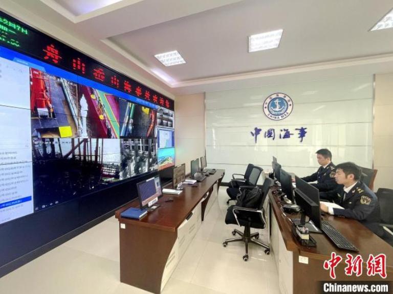 近日,一艘中国香港籍30万吨油轮“海悦”轮在浙江舟山岙山港区兴中5号泊位进行卸油作业。在不远处的舟山岙山海事处值班室内,其显示器上正呈现出港区油轮作业场景,消防设施配备、船员值班作业、红外成像图等都一目了然。