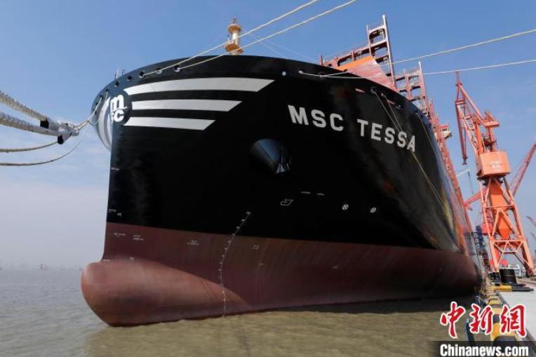 中新网上海3月9日电(殷立勤张文豪)中国制造全球最大级别集装箱船新记录在上海诞生。中国船舶集团有限公司旗下沪东中华造船(集团)有限公司联合中国船舶工业贸易有限公司为地中海航运公司(MSC)建造的24116TEU超大型集装箱船系列船首制船“地中海泰萨”(MSCTESSA)号,3月9日在中船长兴造船基地命名交付。这是目前全球完工交付的最大级别集装箱船,打破了去年6月交付的超大型集装箱船“长益”号24000TEU的装箱量,沪东中华又创下一项新纪录,进一步巩固了中国船舶在世界超大型集装箱船建造领域的引领地位。