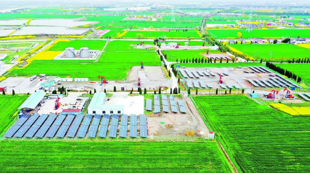 截至3月27日,位于江苏泰州的华东油气分公司首座分布式光伏发电站——洲城光伏发电站,自2022年投运以来累计发电超百万千瓦时。作为该公司积极推进绿色低碳发展的一项重要举措,该发电站利用采油作业区空余地面建设,采用自发自用、余电上网模式,与周边农田构成一幅和谐优美的生态画卷。图为光伏发电站鸟瞰图。本报记者沈志军摄通讯员金华文