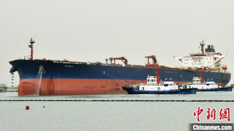 图为4月15日,外籍油轮在河北黄骅港泰地液化码头靠泊,准备作业。