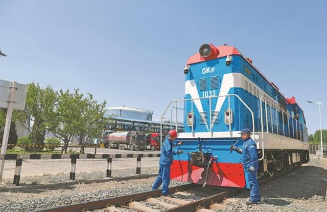 图为员工对机车车钩进行闭锁、开锁、全开等“三态”检查。