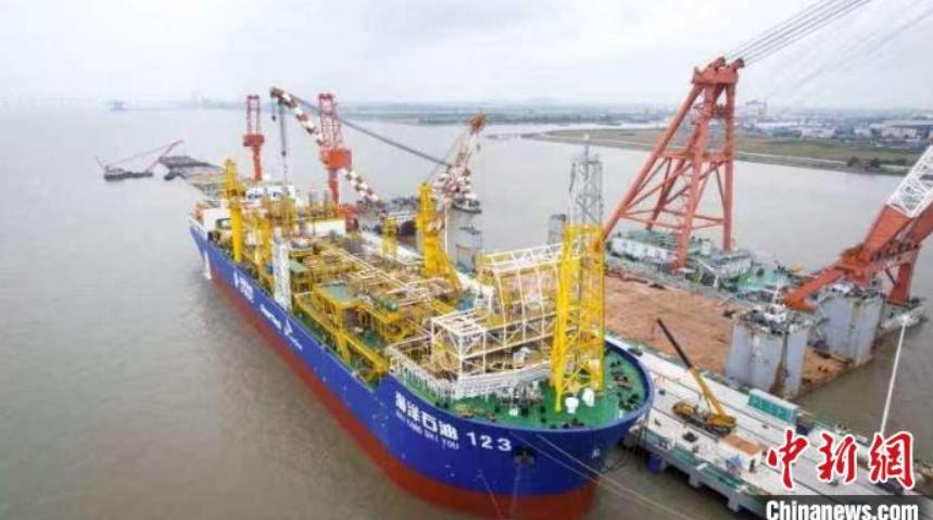 记者6月16日获悉,由中海油能源发展股份有限公司投资建造的全新智能FPSO(浮式生产储卸油装置)“海洋石油123”在江苏南通完成陆地建造并成功交付,标志着中国海油加快推进海上智能油田建设取得新进展。浮式生产储卸油装置是开采海洋油气资源的高端大型海洋工程装备,可实现海上石油、天然气等能源的开采、加工、储存、外输、发电,被称为“海上油气加工厂”。“海洋石油123”是一艘10万载重吨级的船型浮式生产储卸油装置,船长241.5米,型宽45.2米,型深25.4米,其系泊中心水深大约236米,甲板面积相当于1.5个标准足球场大小。