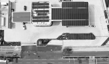 江苏扬州石油渡江加能站是江苏石油首座光伏建筑一体化(BIPV)加能站,于6月11日并网发电。不同于光伏系统附着在建筑上,光伏建筑一体化加能站采用BIPV式光伏组件,整体设计施工,将光伏板与罩棚顶融为一体,兼具美观性与实用性。运行一个月以来,该站累计发电1.78万千瓦时,不但满足了加能站日常用电需求,而且实现了节能降碳、降本增效。据悉,江苏石油加速发展光伏发电业务,累计建成451个分布式光伏发电项目,预计年发电量800万千瓦时,每年可减少二氧化碳排放超4500吨。图为渡江加能站俯瞰图。