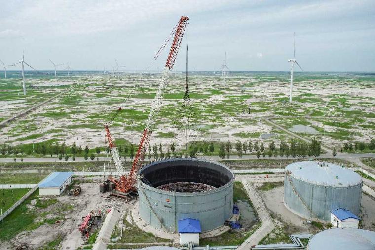 大庆油田首次完成20000立方米储罐浮顶整体吊装(图)