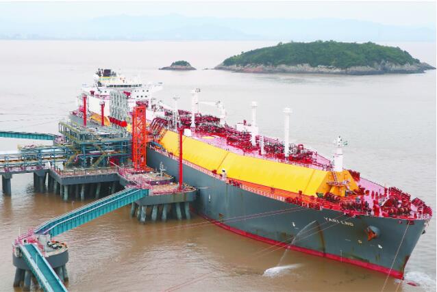日前,温州LNG接收站安全平稳接卸首艘船舶,标志着该站投料成功。温州LNG接收站为天然气分公司合资项目,由广州(洛阳)工程总承包建设,是国家天然气基础设施互联互通重点工程、长三角一体化发展重点项目。项目投运后,将满足浙南地区的用气需求,促进地方产业结构优化调整。图为首艘LNG船雅锐号接卸现场。何家杰摄 王卓然 李建永 文