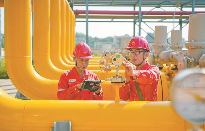 图为员工检查输气情况。