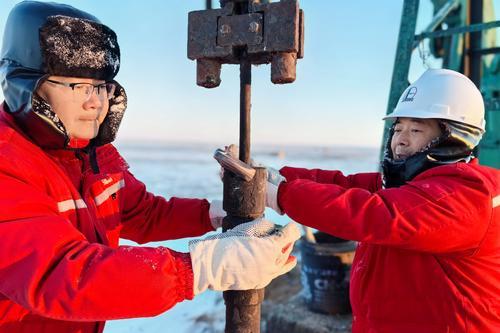 11月22日,华北油气分公司采油一厂完成二连区块年度14口井的捞油试采任务,为该区块全面复产奠定基础。二连区块地处内蒙古自治区二连浩特市,探明储量250万吨,是推动公司增储上产的接续阵地。在恶劣天气下,项目组树立安全第一的理念,确保了设备正常运转、人员防寒措施到位。图为11月20日员工紧固抽油机盘根盒。