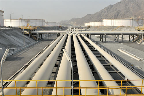 阿布扎比原油管线陆上海洋终端末站MOT罐丛。