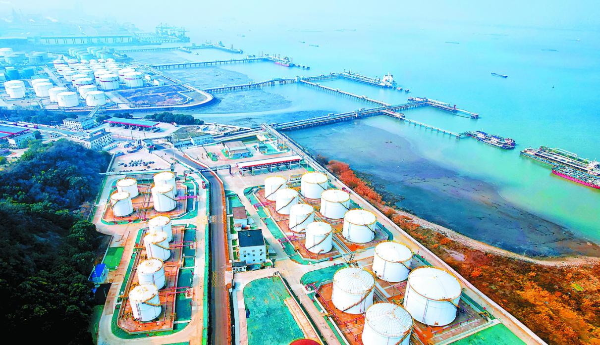 1月8日,江苏石油长山油库东江库区完成品种调整和安全环保提升项目改造,成为江苏石油沿江库容最大、收发工艺最全、兼备管道下载和注入的成品油仓储基地。改造完成后,该库区油罐全部采用“钢制+全接液+大补偿”二次高效密封形式,升级了油气回收系统,有效提升整体安全环保水平和智能化水平,为保护长江生态环境、保障能源供应发挥重要作用。图为长山油库东江库区全景。