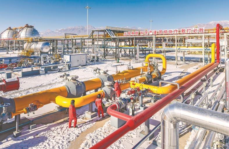 图为1月21日,员工在博孜天然气处理厂认真排查每条管线、每个阀门。