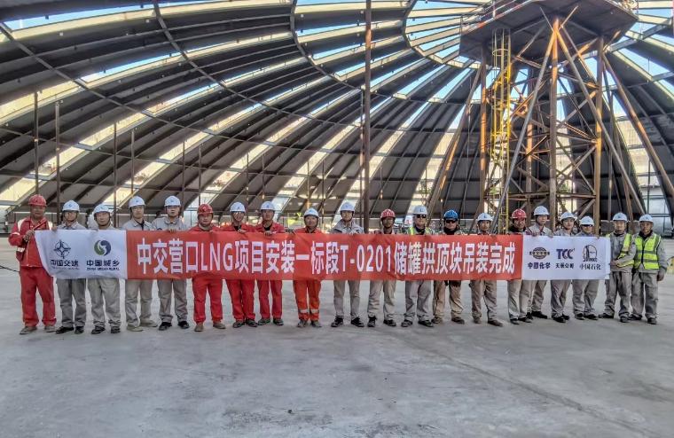[中化新网 2024-05-09]5月4日,从石化四建公司获悉,5月1日,四建储运工程公司承担的中交营口LNG项目首座20万立方米LNG低温储罐T0201#罐最后一片穹顶模块入罐就位,历时3天半,实现穹顶完成吊装顺利合拢,向“五一”劳动节献礼,为9月份储罐穹顶气顶升夯实基础。
