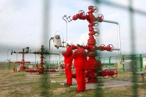 今年以来,华北油气分公司东胜气田立足天然气勘探开发主阵地,依托地质工程一体化,高质量、快节奏推进天然气增储上产工作,截至10月11日,累计产气突破15亿立方米。图为东胜气田员工查看井口设施和生产参数。