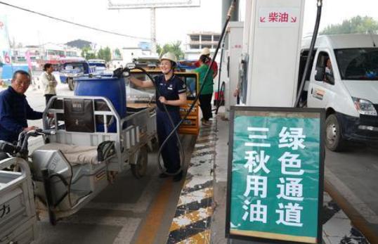 图1:10月9日,农户在河南商丘石油宋集加能站“三秋”用油绿色通道加注油品。陈晶晶 摄