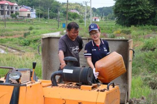 图3:近日,湖南长沙石油开慧加能站员工为开慧镇葛家山村农户送油。曾 芬 摄