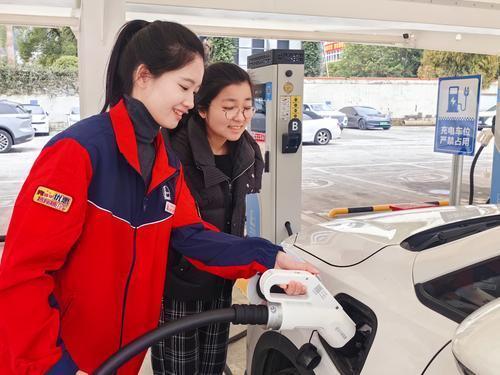 3月6日,浙江石油首批二代充电枪线在温州乐清公安路充电站正式投用,该类枪线优化焊接技术和线径后,线缆自重、外径、弯曲应力较传统充电枪线有效减少,便于客户自主安全充电,提升客户体验。图为浙江石油温州乐清公安路充电站员工使用二代充电枪线为客户充电。杨昭桐 摄 施 琦 文