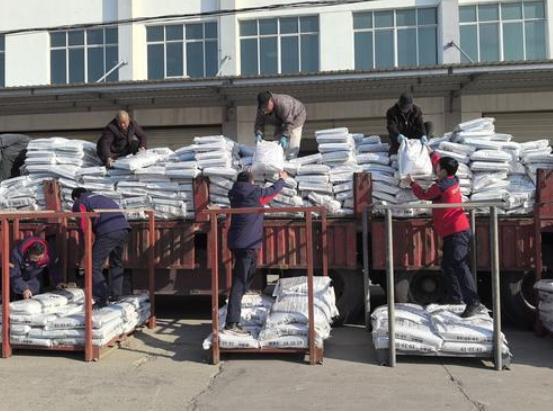 近日,江苏徐州石油紧抓春耕用肥时机,大力开展化肥促销活动,邀请农业技术专家指导农户选肥用肥,组织志愿者送肥下乡。截至目前,累计销售化肥突破200吨。图为3月19日志愿者搬运化肥。