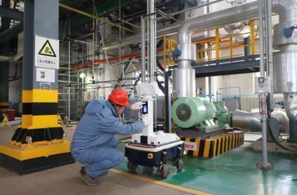 近日,中天合创在甲醇部空分装置投用智能机器人辅助巡检。该机器人能够按照预设路线巡检,覆盖生产区域所有关键位置,具备各类仪表读数、管线跑冒滴漏检测等功能,可大幅减轻员工工作压力,提高现场设备运行管理水平。图为3月28日操作人员在现场调试智能机器人。
