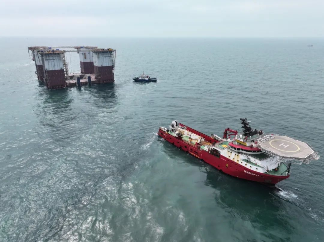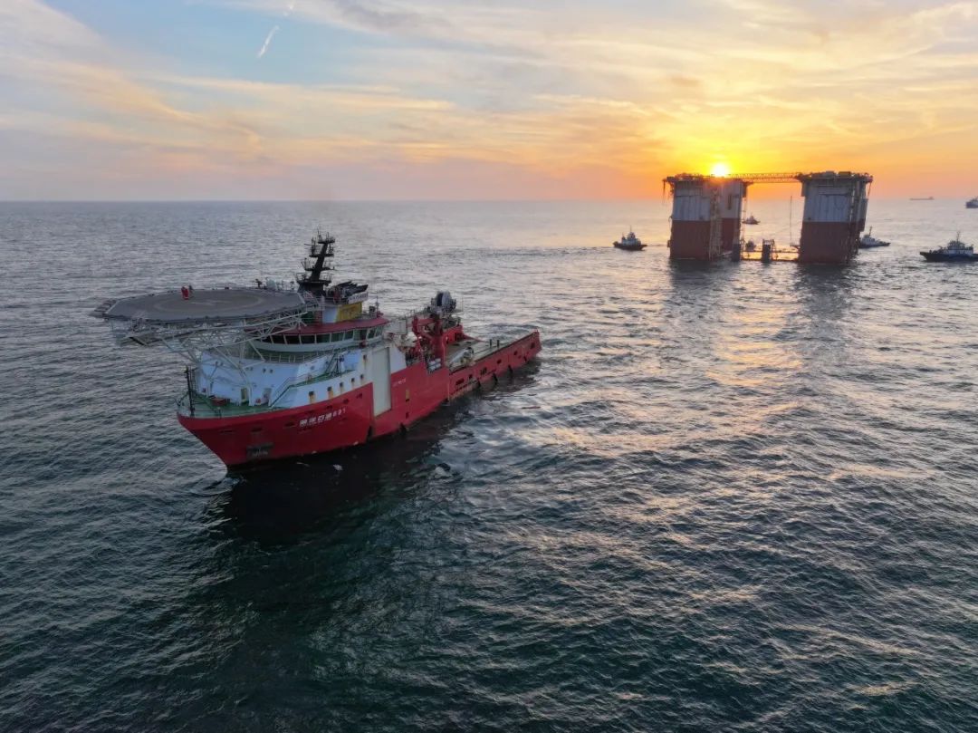 4月26日,由中海油服船舶事业部负责实施的国内首个超大型浮式生产平台底部浮体模块拖带项目在上海外锚地顺利启航。