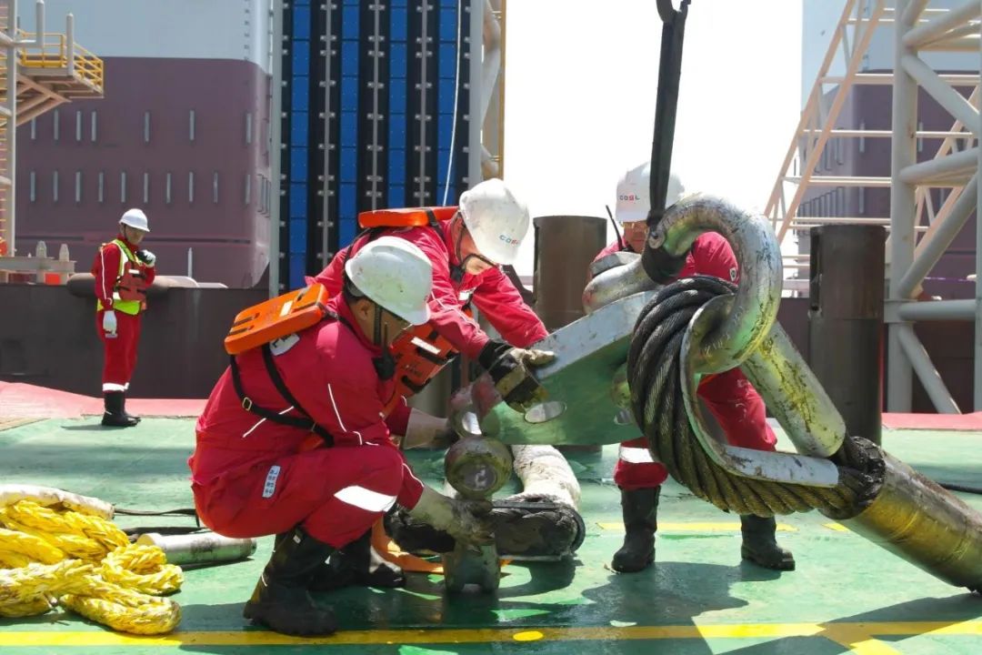 为确保拖航任务万无一失,中海油服船舶事业部项目组多次进行现场调研,对底部浮体的挂拖及换拖方案进行反复研究、论证及沙盘模拟,决定继续沿用“深海一号”拖航作业中较为成熟的三船并拖,针对在项目中的潜在风险,分别制定了应急预案、协调避让及失控操作方案等六大预案,为项目安全实施提供保障,同时对拖航全流程作业提供全方位的技术支持,以有效管控拖带过程中的换拖、压载等各项技术难题带来的风险。