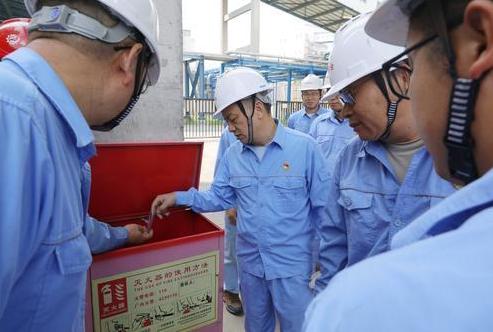 “五一”假期临近,中安联合对煤化工生产装置进行分区域、拉网式安全检查,重点检查原辅物料保供、干部值班安排、关键设备运行等情况,对现场隐患进行全面整改,保障节日期间安稳生产。图为4月27日检查组在热电装置液氨储罐现场检查消防器材。
