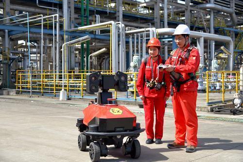 西南油气分公司元坝气田应用智能巡检机器人,实时监测工艺、设备、安全环保点位,同时配合人工巡检形成“双保险”,有效提高现场信息感知和应急处突能力。图为日前元坝净化厂员工调试智能巡检机器人。雍 静 摄 赵 挺 努尔曼 文