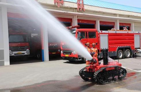 4月17日,华北油气分公司采油气工程服务中心应急抢险中心正式启用消防机器人参加气田采气树硫化氢泄漏演练。该机器人搭载多维度智能感知系统,可360度无死角监控现场,快速识别隐蔽火源,实时监测硫化氢浓度,精准定位泄漏点,让救援更加智能化。图为消防机器人进行演练前的测试。