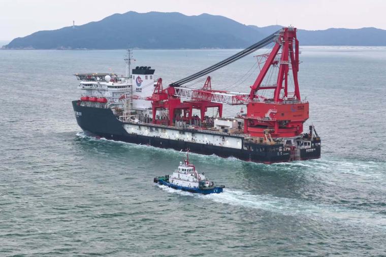 我国首艘深水铺管起重船启航进行首次国际作业(图)