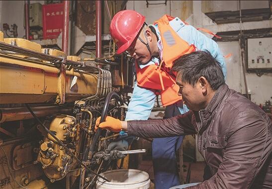 员工帮船东更换设备。陈君伟 摄