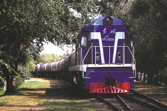 满载着油品的铁路罐车从大庆龙凤油库驶出,向大连港源源不断输送油品。张浩男 摄