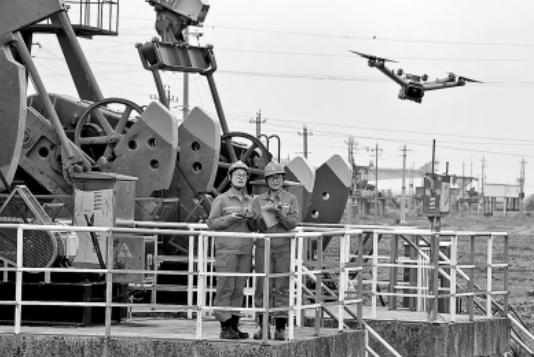 江苏油田打造“视频网巡+空中飞巡+人工精巡”智能巡检新模式,在提升生产运行效率的同时,帮助操作人员对发现的隐患快速实施销项管理,为原油生产安全稳定运行筑牢根基。图为7月30日江苏油田采油二厂员工利用智能无人机对油气生产设备设施进行精细化巡检。