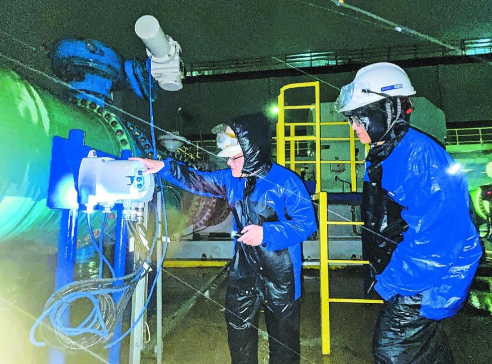 8月14日,古雷石化员工雨中检查循环水备用泵运行情况。