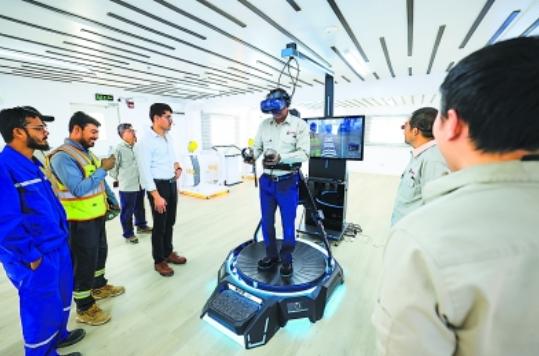 项目部引进国产VR数智化培训设备,助力项目高质量运行。图为外籍员工通过VR体验防中暑应急演练。
