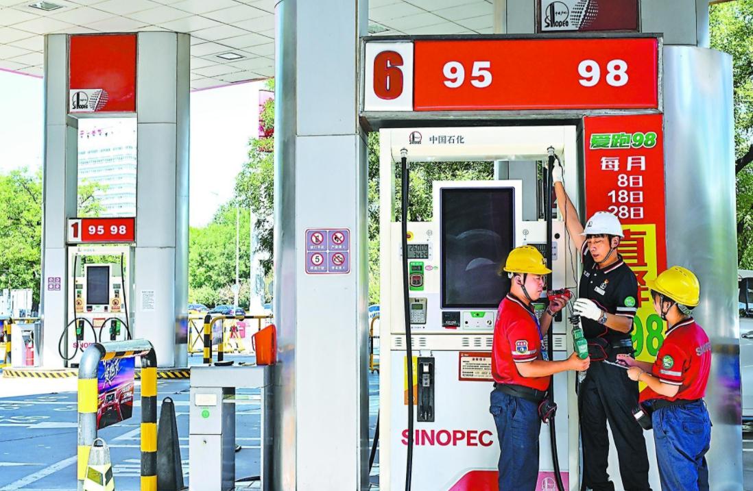 9月1日,北京石油崇文门加能站员工检查设备安全运行情况。