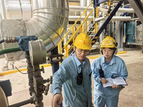图2:金陵石化充分依托班组技师的资源优势,为新员工开展“一对一”精准指导;建立月度“理论+实操”岗位技能考核机制,助力新入职员工实现阶梯式成长。图为9月10日,炼油三部高端石墨装置工艺班组技师向徒弟细致讲解现场流程。王建慧 摄